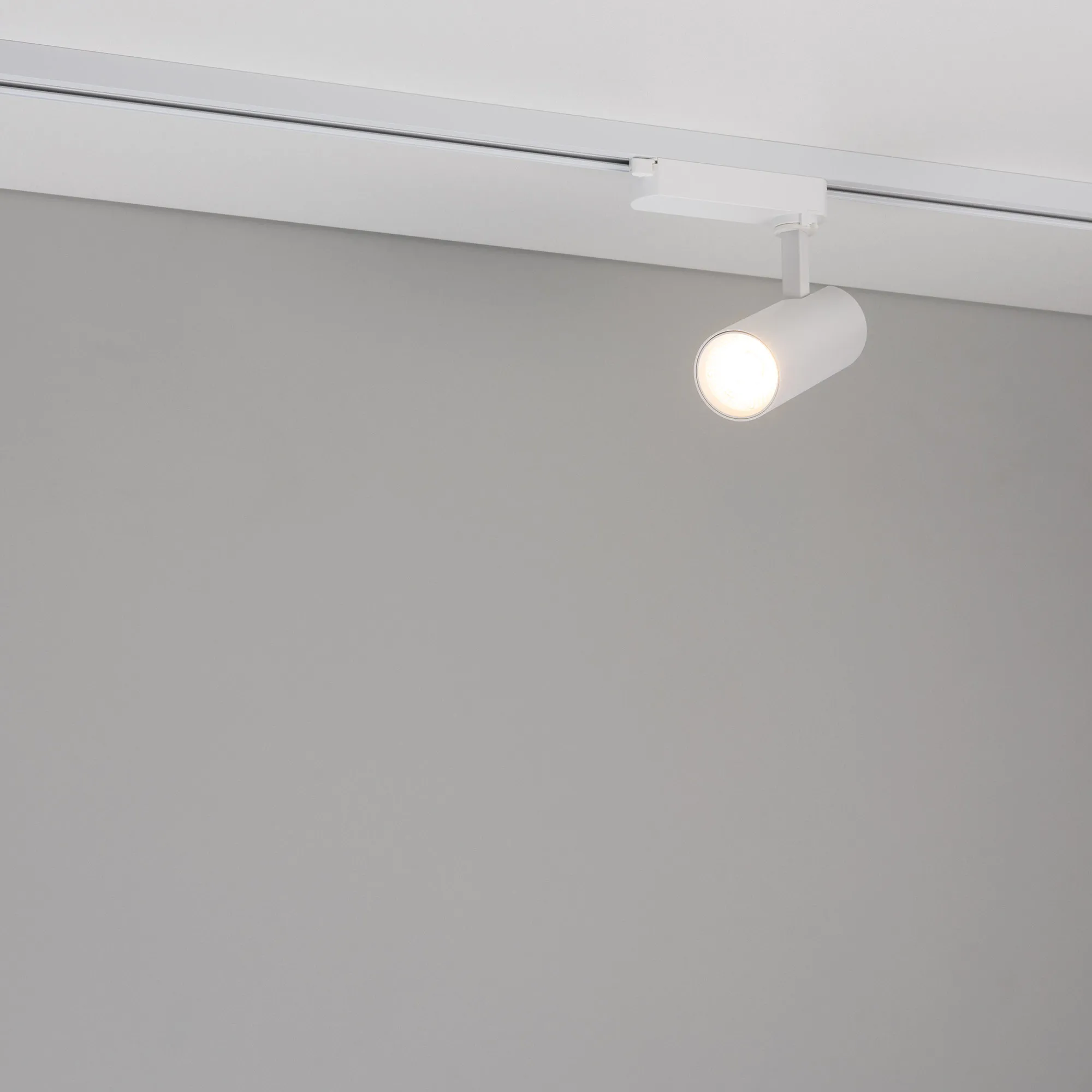Светильник для треков/шин 2 провода. Мощность 10 Вт, св. поток без решетки honeycomb 1000 лм, 100 лм/Вт, с решеткой honeycomb 660 лм, 66 лм/Вт, дневной 4000 K, CRI>90, угол 55°, напряжение питания 230 В. Белый круглый корпус из алюминия, материал линзы PMMA, степень защиты IP20. Размер: диаметр 55 мм, длина световой части 141 мм. Монтаж на трек 1-фазный. Драйвер встроенный 25-40 В, 250мА., пульсация <5%.