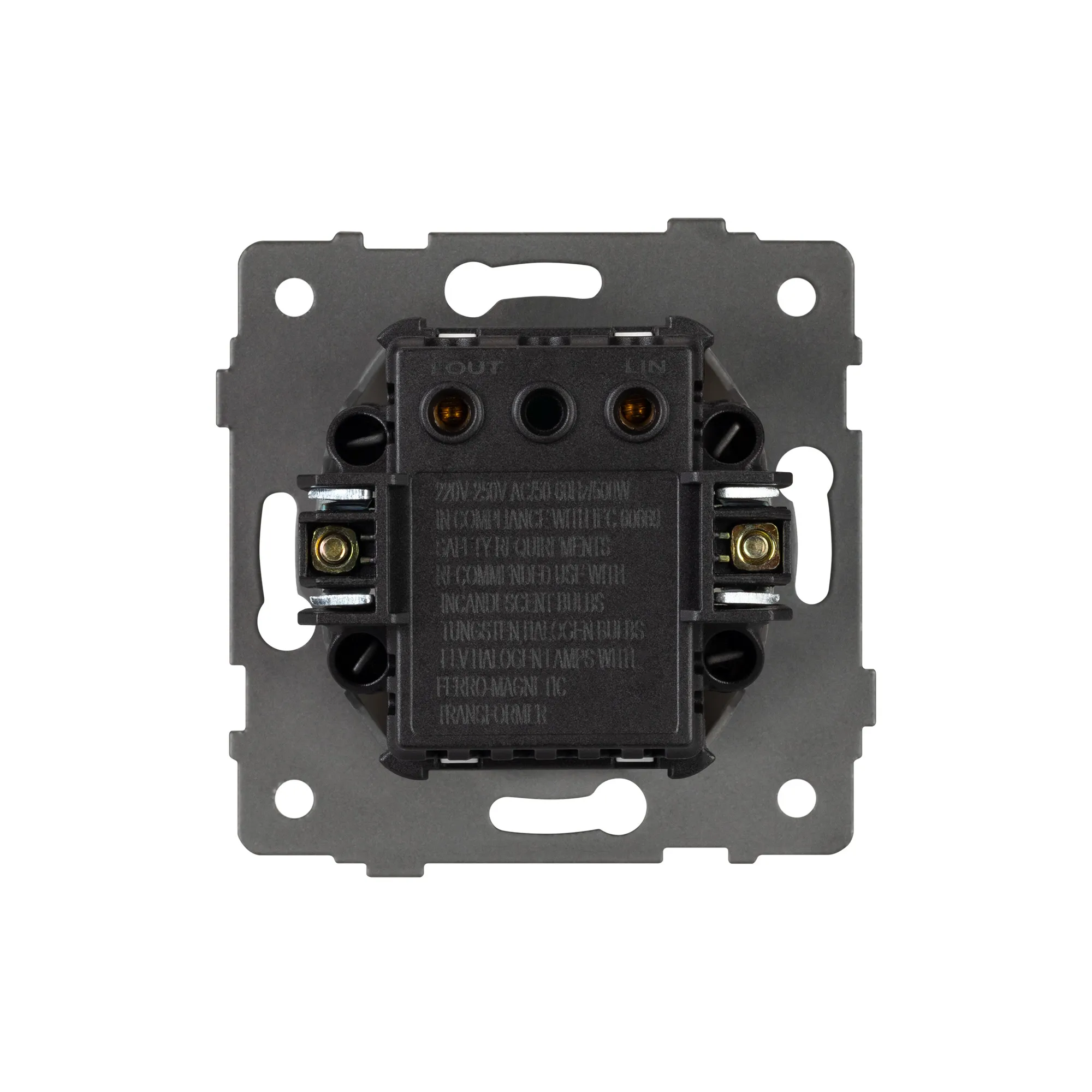 Механизм регулировки света на 1 пост. Цвет - белый. Без фронтальной рамки. Уровень пылевлагозащиты IP20. Механизм устанавливается в стандартный круглый подрозетник. Максимальная нагрузка 500 Вт только для ламп накаливания и галогенных, 150 Вт только для энергосберегающих и светодиодных ламп. Габаритные размеры: длина 71 мм, ширина 71 мм, высота 52 мм. Гарантийный срок 10 лет.