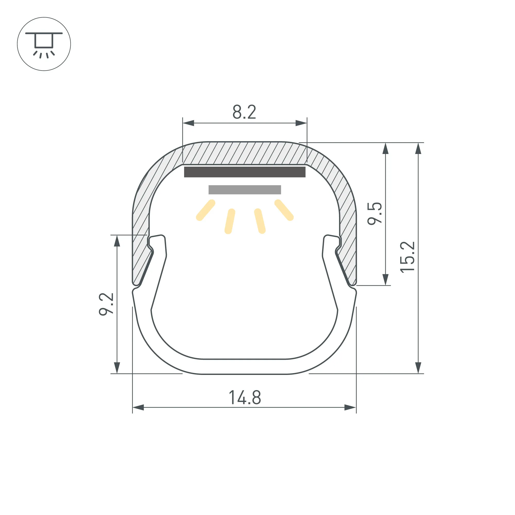 Алюминиевый анодированный профиль для светодиодных лент и линеек. Габаритные размеры (L×W×H): 2000x14,8x9,5 мм (с экраном 2000x15x15 мм). Ширина площадки для ленты 8,2 мм. Экраны, заглушки и другие аксессуары приобретаются отдельно. Цена за 1 метр.